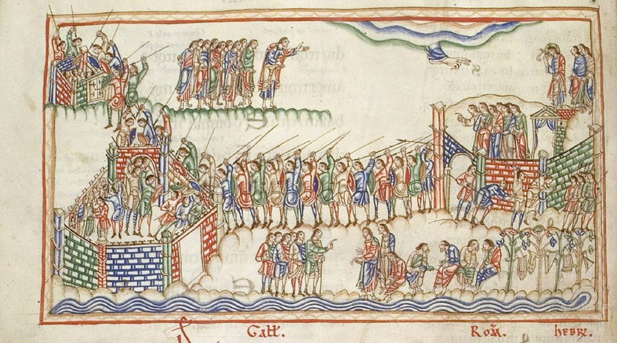 Das Gottesvolk unter der Herrschaft Babylons. Illustration zu Psalm 136 (137) im Psalter des Eadwine von Canterbury (12. Jh.). Cambridge, Trinity College, Ms. R. 17.1 − Bildquelle: wikimedia commons/gemeinfrei